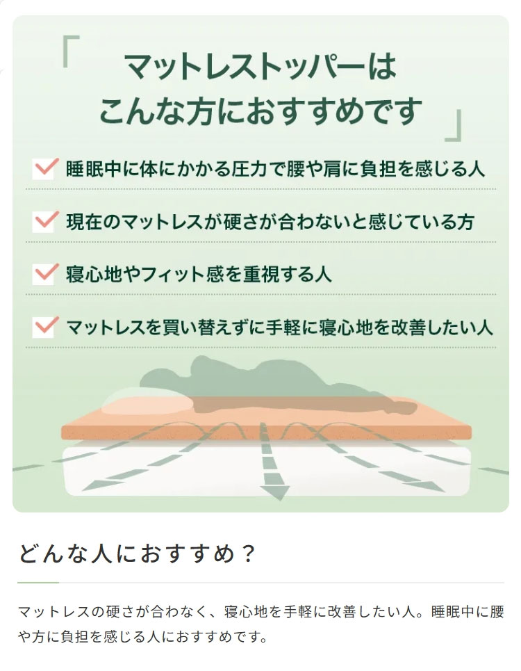理想の眠りを支える“ZINUS(ジヌス)”のマットレストッパーお使いのベッドマットレスや布団の上にのせるだけで寝心地改善。