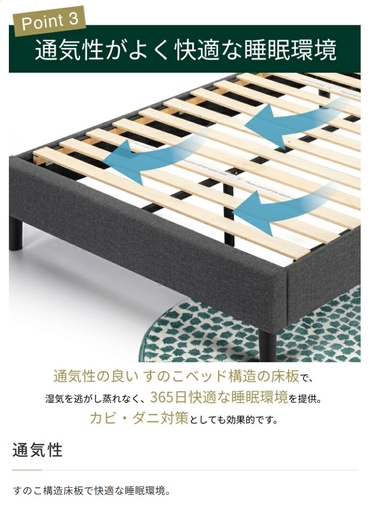 全世界で2500万人以上の顧客への販売実績をもつZINUSが提供する、布張りベッドフレーム【Curtis Upholstered Platform Essential】シリーズ。