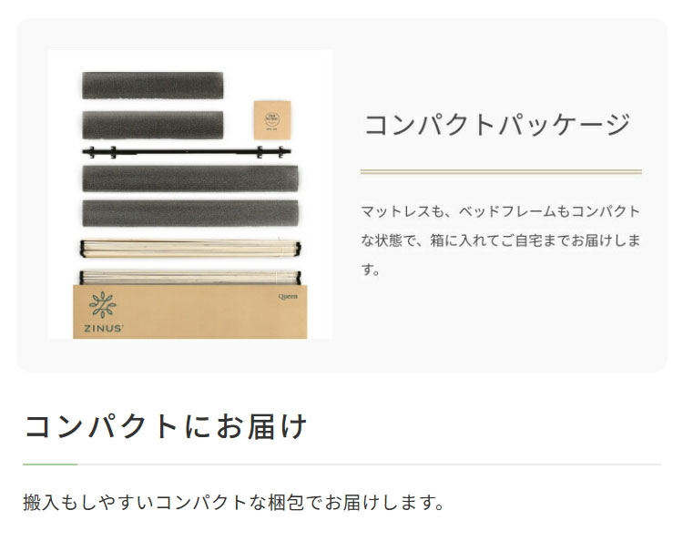 | 重量 | 【本体重量(約)】 シングル : 21.5 kg セミダブル : 21 kg ダブル : 29.8 kg ※誤差が生じる場合がございます。 【梱包重量(約)】 シングル : 22.68 kg セミダブル : 25.54 kg ダブル : 31 kg ※誤差が生じる場合がございます。 |