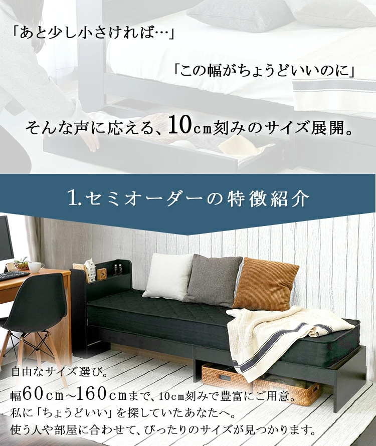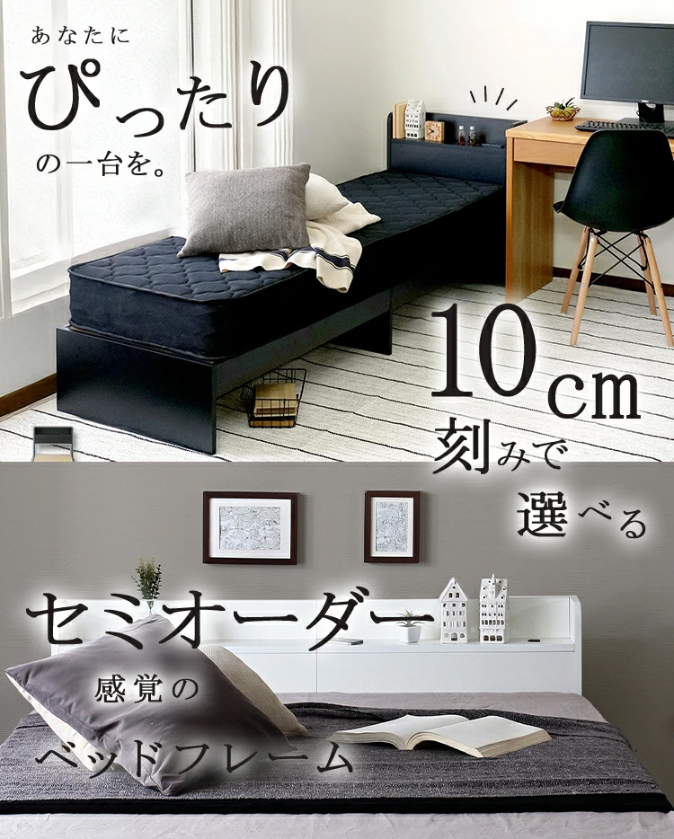10cm刻みで選べる、セミオーダー感覚のベッドフレーム